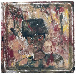 Purvis Young, Returning Solider, Housepaint on Metal Tray and Board, approx. 24" x 24" $30,000.00