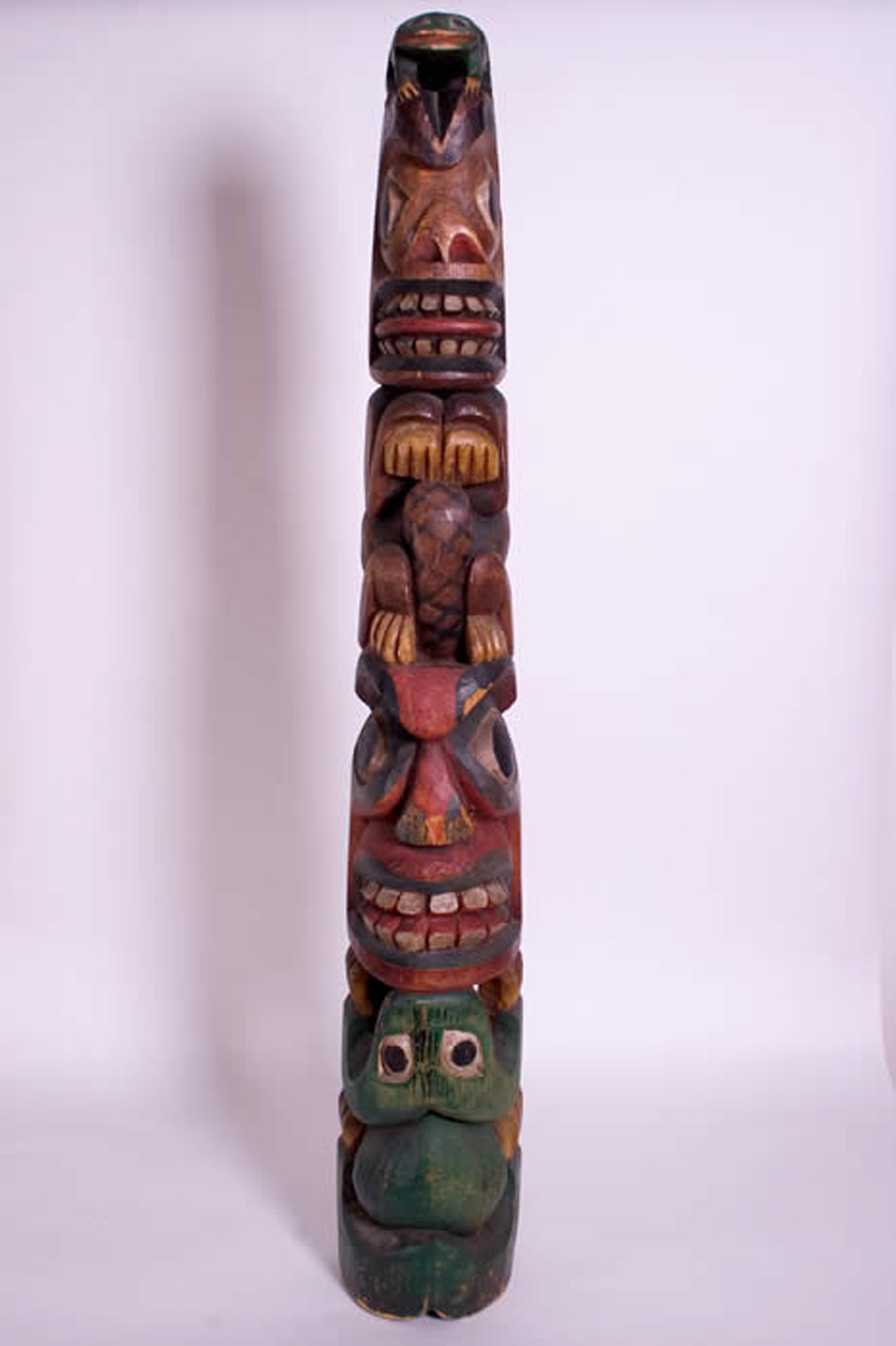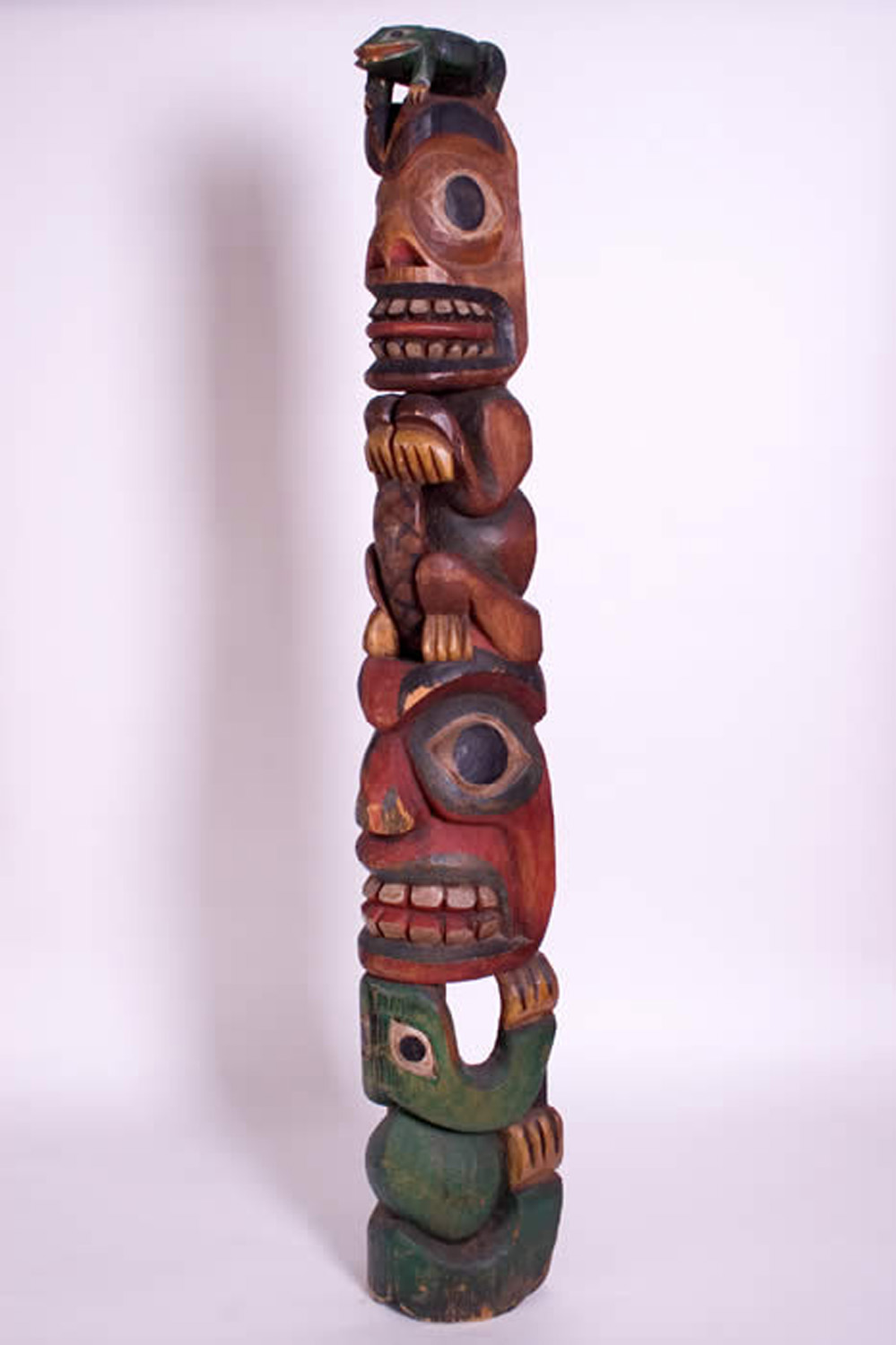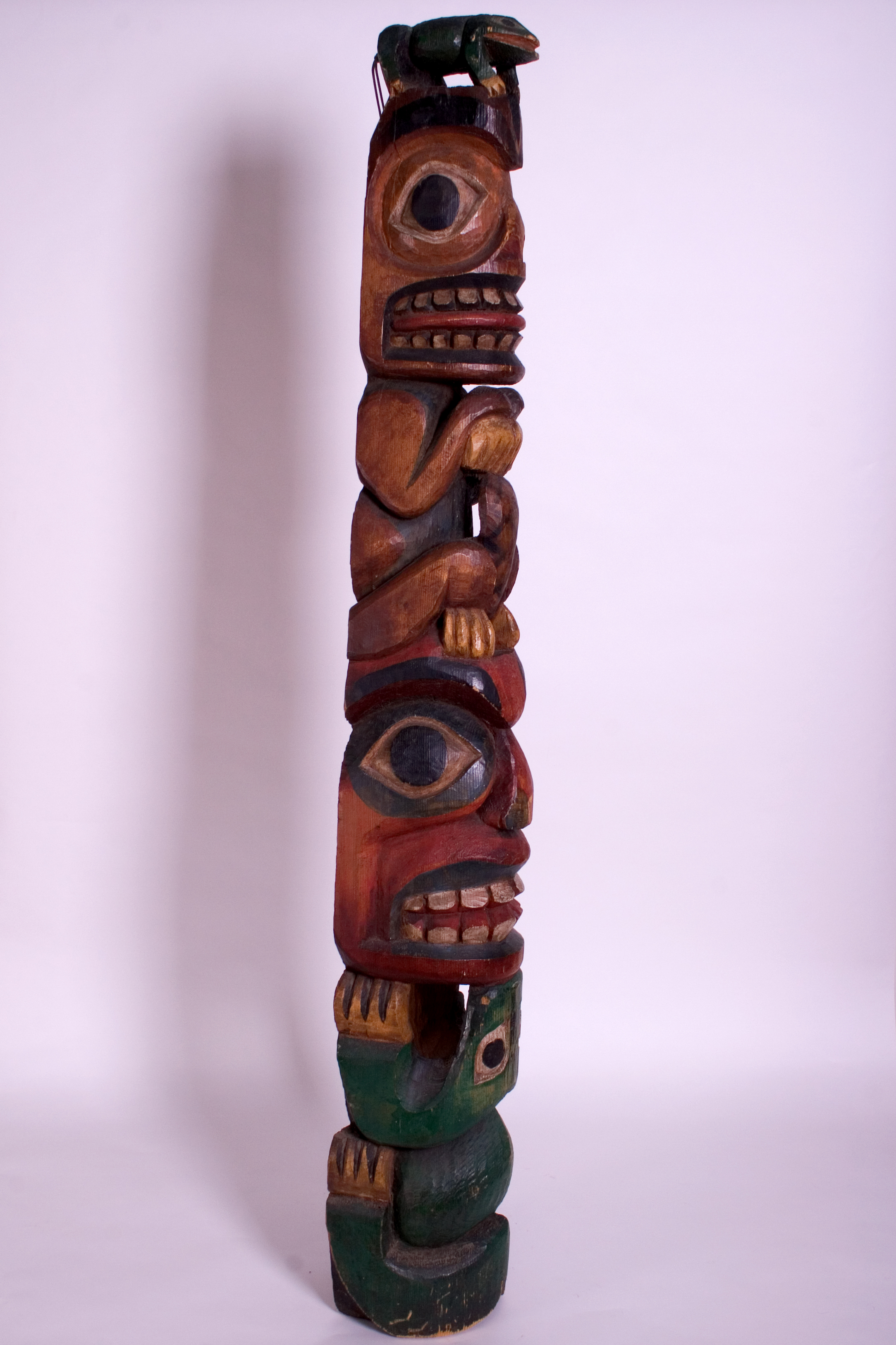 Late 19th or Early 20th Century N.W. Coast Transformational Ceremonial Totem 54"X8"