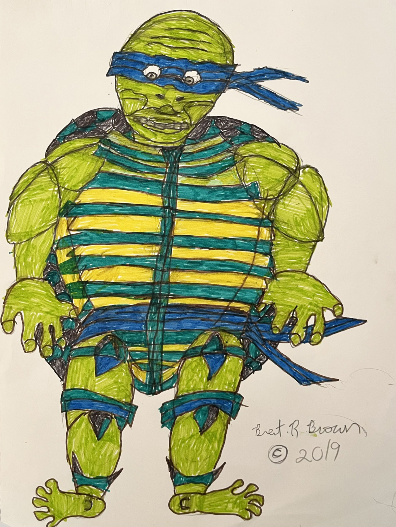 Brent Brown | Ninja Turtles (Drawings) | BRB1095 | Terry the Ninja Turtle Green/Blue Stripes
